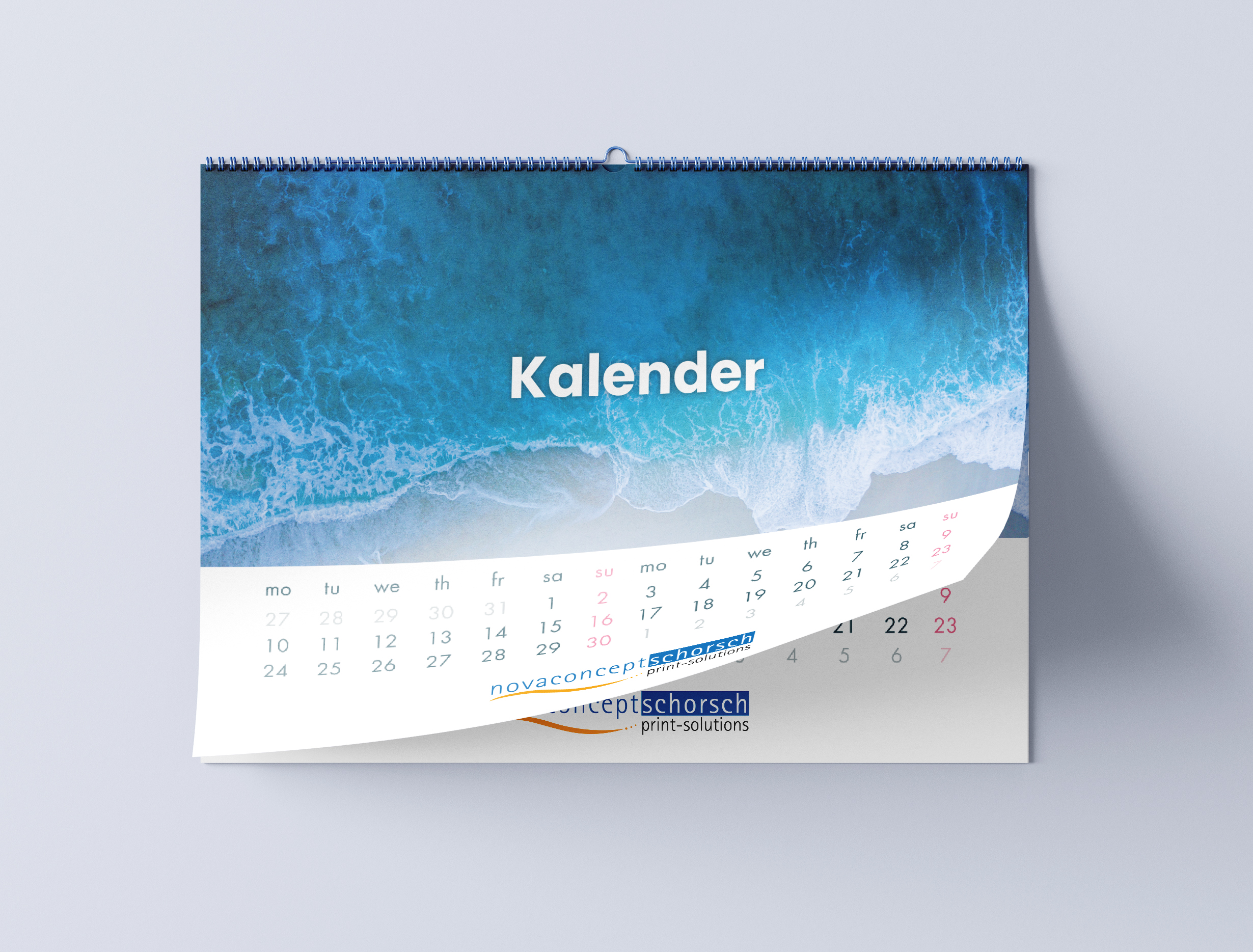 Eine transparente PVC-Folie als Deckblatt bietet dem Kalender Schutz und gleichzeitig exklusives Aussehen. Großformatige Kalender und/oder höhere Auflagen stellen wir im Offsetdruck bis zum Format DIN A 1 (59,4 × 84,1 cm) her.